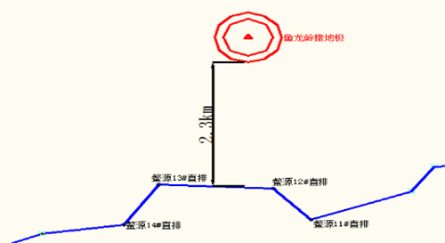 圖 2 魚(yú)龍嶺接地極與管道相對距離示意