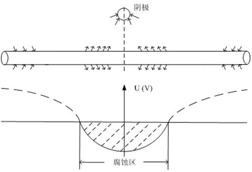 圖 5 接地極陰極運行時(shí)管道電流流向示意