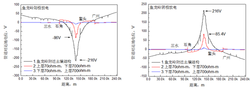 筆者研究了魚(yú)龍嶺接地單極大地回路電流運行方式下,接地極泄放電流至大地時(shí),對廣東管網(wǎng)影響的規律,入地電流大小與管道電位的關(guān)系,站場(chǎng)、閥室接地網(wǎng)與管道跨接對干擾的緩解效果,入地電流對管道極化電位的影響等。