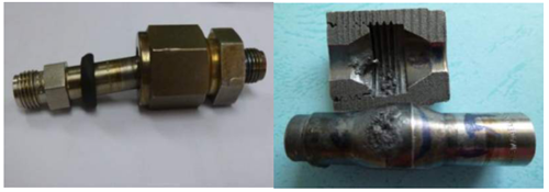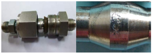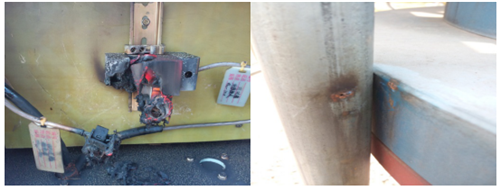 圖9等電位連接器燒毀 圖10接地套管與閥體接觸放電燒蝕