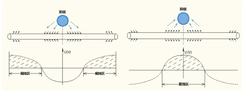 高壓直流輸電系統接地極對管道干擾危害主要表現在以下幾個(gè)方面:①造成管道電位嚴重偏移,存在人身和設備安全風(fēng)險。②雜散電流流入管道位置,存在防腐層剝離和管道氫脆開(kāi)裂的風(fēng)險。③雜散電流流出管道位置,存在管道防腐層破損點(diǎn)處管體腐蝕風(fēng)險。④雜散電流在管道中流動(dòng),影響設備的可靠性和天然氣站場(chǎng)及閥室防爆安全。