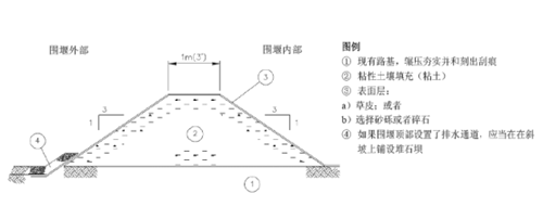 《輸油管道站場(chǎng)儲罐區防火堤技術(shù)規范》(Q/SY1593-2013,中國石油天然氣集團公司企業(yè)標準)規定:防火堤應使用不燃燒材料建造。首選土堤,當條件不足時(shí),可用磚混、鋼筋混凝土等不燃燒材料砌筑,但內側應培土。強度設計應符合GB50351的要求。