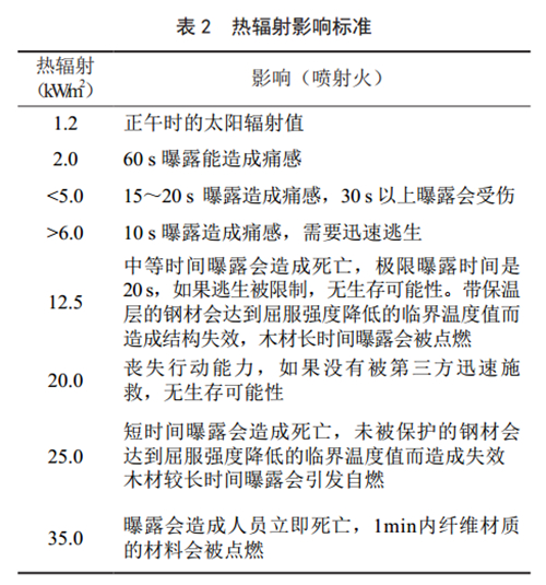 圖 7中,上條線(xiàn)(1.0E-03)為風(fēng)險可接受標準的上限,下條線(xiàn)(1.0E-05)為風(fēng)險可接受標準的下限。通常以火災熱輻射強度12.5 kW/m2所對應的最遠距離作為安全距離,其對應風(fēng)險可接受標準的下限,人在該距離的逃生時(shí)間約20 s(表 2)。