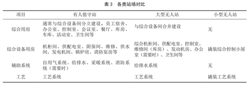 通過(guò)對現有各類(lèi)站場(chǎng)模式的對比(表 3),可以看出,無(wú)人值守站場(chǎng)用房用地均可得到簡(jiǎn)化,逐漸打破專(zhuān)業(yè)分工,電氣、自控、通信、陰保、暖通等設備可綜合設計與安裝。