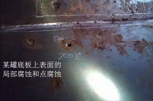 儲罐底板的土壤側的儲罐底板的腐蝕比介質(zhì)側更加嚴重。邊緣板是容易受腐蝕的部位,儲罐基礎如果沒(méi)有有效的防滲水措施或防滲水材料老化失效,則雨水和水汽容易沿罐底板與罐基礎的縫隙侵入到罐底的周邊部位,進(jìn)行腐蝕。