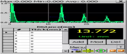根據超聲波脈沖反射原理來(lái)進(jìn)行厚度測量的,當探頭發(fā)射的超聲波脈沖通過(guò)被測物體到達材料分界面時(shí),脈沖被反射回探頭,通過(guò)精確測量超聲波在材料中傳播的時(shí)間來(lái)確定被測材料的厚度。