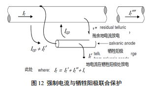 其目的是在不損害陰極保護效果的前提下,提供安全的低電阻對地泄流路徑,只要土壤電阻率足夠低,能夠使犧牲陽(yáng)極有效輸出電流,且排除一部分電流,沿線(xiàn)分布的犧牲陽(yáng)極就會(huì )有效緩解地電流腐蝕影響(圖 12)。