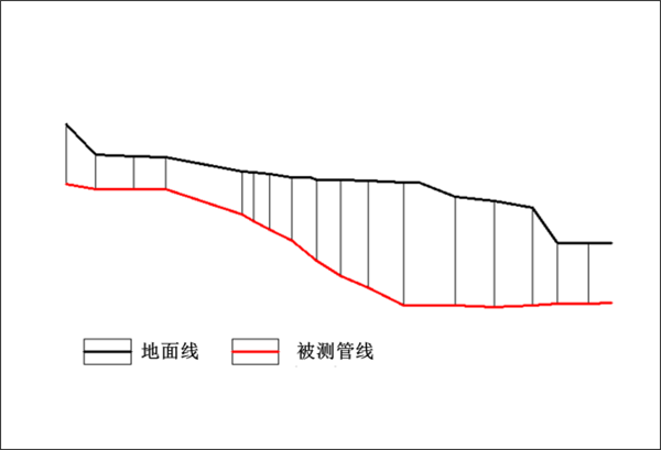 在測試過(guò)程中,按照每2 m采測一個(gè)點(diǎn)。在地形起伏大的地方如河堤或坡坎處(管道起彎頭)增加測試密度。陸地管道測試則不需要連接測深儀。