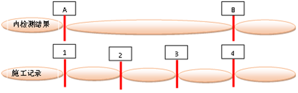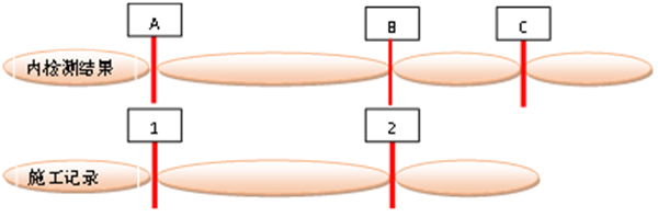 數據對齊是將建管數據與內檢測數據進(jìn)行一一對應[1],以數據中相同且固定的特征標識(閥門(mén)、三通、彎頭)為起始點(diǎn),比對每一根管節長(cháng)度,通過(guò)管長(cháng)最小差實(shí)現二者數據的對齊。對施工記錄、檢測記錄、監理記錄、底片中的焊口信息(如:焊口編號、施工日期、檢測日期、監理旁站日期等)進(jìn)行一致性和邏輯關(guān)系復核。數據對齊對于疑似黑口的準確定位至關(guān)重要,一旦出錯,后續工作均會(huì )受到影響。在數據對齊表中需要記錄管線(xiàn)名稱(chēng)、標段、壁厚、樁號里程、管號、焊口編號、施工管長(cháng)、施工日期,以及內檢測的焊縫編號、管長(cháng)、檢測里程、設備和缺陷等信息,從中可以直觀(guān)查看施工記錄和內檢測的對應關(guān)系(圖 5)。