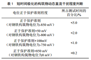 (2)從管道極化電位偏移的角度對動(dòng)態(tài)直流雜散電流干擾下陰極保護管道的干擾風(fēng)險規定見(jiàn)表 1。