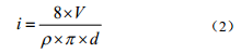 式中: i 為評估的交流電流密度, A/m2; V 為交流干擾電壓有效值的平均值, V; ρ 為土壤電阻率,Ω·m; d 為破損點(diǎn)直徑, m。