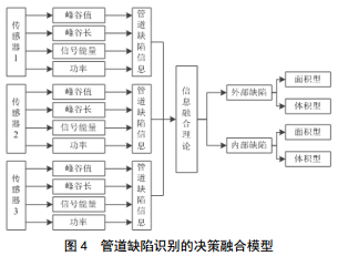 管道缺陷檢測診斷是一個(gè)多源信息融合處理與狀態(tài)識別的過(guò)程,多通道傳感器的數據具有多源性[7]。因此,基于信息融合對管道的缺陷識別進(jìn)行決策融合識別,如圖 4所示。