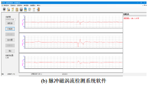 利用式(1)所示的脈沖磁渦流原理,研制了油氣管道脈沖磁渦流探傷系統(PMS-I型),硬件如圖 5(a)所示,軟件界面如圖 5(b)所示。為了驗證 小信號識別與診斷模型的有效性,利用該設備開(kāi)展了室內與現場(chǎng)試驗。