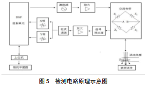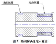 渦流探頭采用近場(chǎng)電磁檢測原理制作而成,在電路的設計上充分考慮和探頭的良好電氣匹配。探頭結構原理見(jiàn)圖 2。