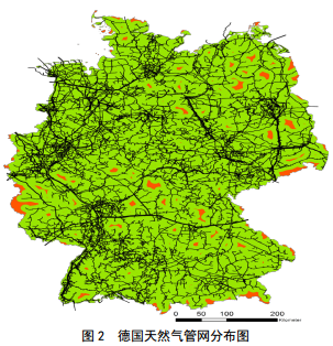 德 國 是 西 歐 多 國 天 然 氣 輸 送 的 過(guò) 境 通 道(圖 1),擁有完善的天然氣輸送和配送系統,境內天然氣管網(wǎng)非常發(fā)達(圖 2),天然氣管道總長(cháng)達55萬(wàn)公里,高壓輸送管道(工作壓力1.6兆帕以上)約4萬(wàn)公里[1]。德國人口8 200多萬(wàn)、國土面積35.7萬(wàn)平方公里,但是其天然氣管道總量與我國天然氣管道 相當[2]。管道建設也存在人多、地少、路由緊張的問(wèn)題,與當前我國面臨的路由選擇困難有相似之處。