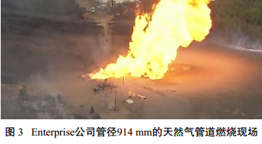 C&H公司鉆車(chē)操作員鉆到1.2 m深度后,鉆頭刺穿了Enterprise公司的管道,管道頂部破裂分離長(cháng)約33.5 m(圖 1)。高壓氣體瞬間噴射將60噸重的鉆車(chē)拋出超過(guò)30 m(圖 2),并且引起劇烈燃燒(圖 3)。 C&H鉆車(chē)操作員當場(chǎng)死亡,其他6名工人受傷?傌敭a(chǎn)損失和清理費用為102.9萬(wàn)美元。