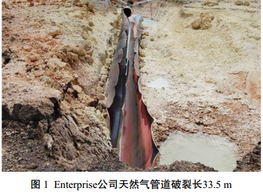 2010年6月7日14:40, C&H公司(施工承包商)為Brazos公司安裝138 kV輸電線(xiàn)路線(xiàn)桿用鉆車(chē)在地面鉆孔,這條線(xiàn)路需要跨過(guò)Enterprise公司和ET公司兩條平行相隔大約9 m、直徑均為914 mm的高壓天然氣管道。