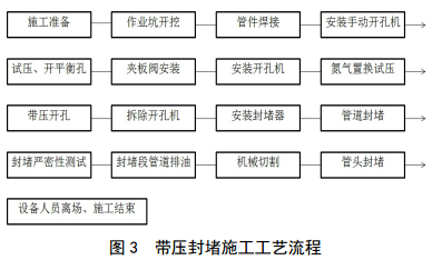 帶壓封堵施工工藝見(jiàn)圖 3。