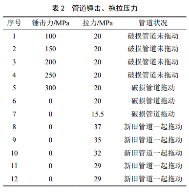 (3)選擇合適的夯錘錘擊和滑輪組牽引,錘擊壓力不大于管道最低屈服強度,牽引拉力不大于管道最低抗拉強度。