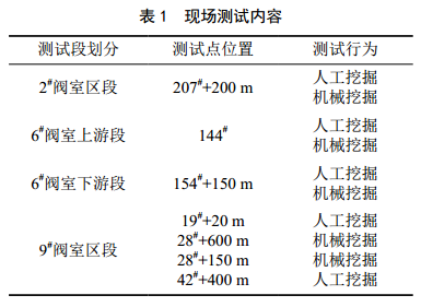 實(shí)驗包括在測試線(xiàn)路上選定測試點(diǎn)進(jìn)行人工挖掘和機械挖掘操作,以模擬管道附近的人工挖掘和機械挖掘損壞行為,F場(chǎng)在3個(gè)監測區段共選擇了7個(gè)測試點(diǎn)進(jìn)行(表1),記錄原始數據和報警響應數據,將報警響應數據作為本次實(shí)驗的最終評價(jià)標準。為測試系統的精確性和靈敏度,在部分測試點(diǎn)進(jìn)行了定位精度、響應范圍、響應時(shí)間及模式識別準確率測試。