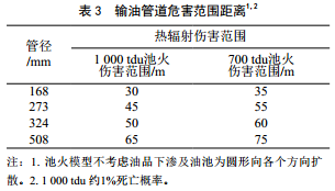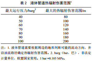 因此,推薦的液體管道熱輻射傷害范圍如表 2 所示。