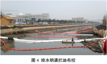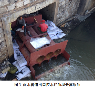 (6)在雨水管網(wǎng)出口、排水明渠、入?、污水處理廠(chǎng)設置8處攔截點(diǎn),共布設25道圍油欄、 51道吸油拖欄、 3道活性炭壩和1道控水攔油壩,用撇油器、抽油機、吸油氈等進(jìn)行油品回收,防止原油入海。污水處理廠(chǎng)及時(shí)開(kāi)閘接納含油污水,采用抽油泵對浮油進(jìn)行回收。