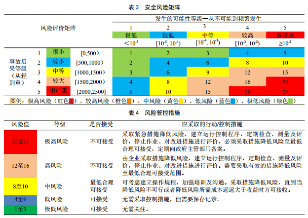 根據風(fēng)險矩陣進(jìn)行風(fēng)險分級,如表 4。根據分級結果,便于實(shí)行風(fēng)險的分級管控。