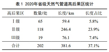 2020年,共識別出高后果區202處,合計長(cháng)度381.6 km,占已投產(chǎn)運營(yíng)管道的37.1%,詳情見(jiàn)表 1。