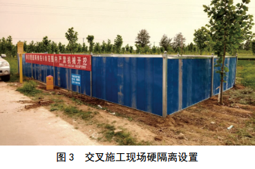 (3)一級硬隔離布控。安全邊界采用鋼管腳手架?chē)鷻诨虿输摪鍑鷵醯仍O置劃定隔離,隔離上沿距離地面高度不低于2 m,顏色為藍色或紅色(圖 2),F場(chǎng)搭設看護帳篷和監控攝像等人防、技防設施(圖 3)。