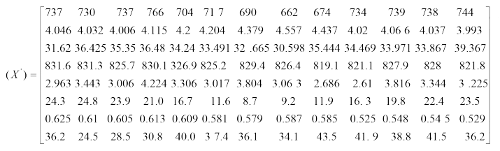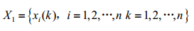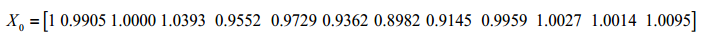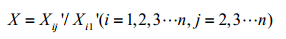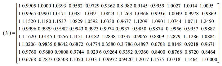 (2)矩陣初始化。初始化處理后得到一個(gè)新的序列,即用序列的第一個(gè)數據去除其他各數據,即: