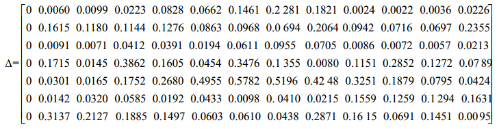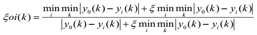 (6)計算關(guān)聯(lián)系數(以矩陣第一行為例)。