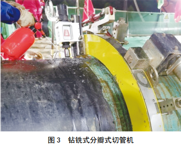 目前,大口徑天然氣管道換管作業(yè)中采用的斷管設備主要有分瓣式切管機、火焰切割機,分瓣式切管機又分為車(chē)削式和鉆銑式(圖 3、圖 4)。