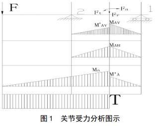機械手采用臂結構實(shí)現空間運行,臂構件主要組成部分是機械手關(guān)節,作用是支持機械手,并促進(jìn)其目標的運動(dòng),實(shí)現在目標活動(dòng)區域范圍內移動(dòng)改變機械手的位置(方位角)。機械手關(guān)節選擇形狀規則的鋼結構,關(guān)節的受力分析如圖1所示。