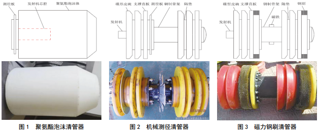 目前常用的成品油管道清管器主要有聚氨酯泡沫清管器、機械測徑清管器、磁力鋼刷清管器等,如圖 1~3。