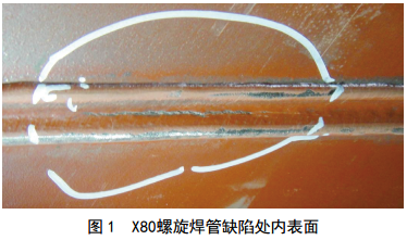由此可見(jiàn), X80螺旋焊管有嚴格的生產(chǎn)程序、質(zhì)量控制和第三方監督檢驗,基本不會(huì )出現質(zhì)量問(wèn)題。筆者介紹一起罕見(jiàn)的國產(chǎn)X80鋼管螺旋焊縫裂紋缺陷,并通過(guò)缺陷成因分析,提出鋼管質(zhì)量控制建議,供業(yè)內參考。
