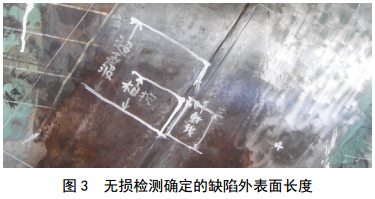 根據工廠(chǎng)記錄,該缺陷進(jìn)行了補焊,補焊后射線(xiàn)檢測合格。之后進(jìn)行16 MPa工廠(chǎng)水壓試驗合格,水壓試驗后超聲檢測、射線(xiàn)檢測合格。