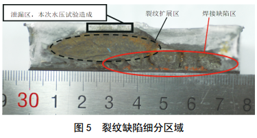 (2)缺陷區域存在外補焊,但外補焊未能消除內表面原始焊接缺陷。