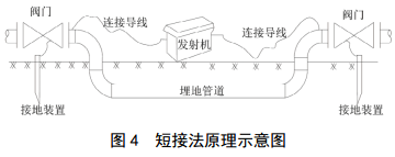 受接地網(wǎng)、相鄰管道、電纜、用電設備的影響,站場(chǎng)內埋地管道的定位存在很多困難,采用“短接法”可以提高其定位精度[6]。但需要注意,當接地網(wǎng)產(chǎn)生的回路電阻小于埋地管道形成的回路,需要斷開(kāi)接地回路,否則“短接法”定位的為接地網(wǎng)的位置,如圖 4所示。