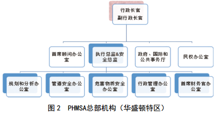 (2)組織機構。 PHMSA由總統任命、參議院確認的行政長(cháng)官領(lǐng)導,高級領(lǐng)導團隊由一名副行政長(cháng)官、首席顧問(wèn)、安全總監和一名主管組成(圖 2)。