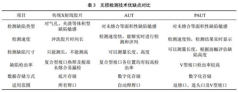 3.3 無(wú)損檢測技術(shù)優(yōu)缺點(diǎn)(表 3)