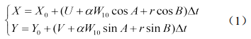 在風(fēng)海流的共同作用下,油粒子群的每一個(gè)油粒子的運動(dòng)可用下式表示: