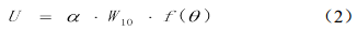式中α 為風(fēng)拖曳系數, f(θ)為科氏力引起的偏轉角的函數, θ 為偏轉角。