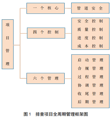 為筑牢管道本體安全,推動(dòng)環(huán)焊縫質(zhì)量風(fēng)險排查工作高質(zhì)量發(fā)展,西氣東輸廣東管理處總結提出“一四六”管理法(即一個(gè)核心、四個(gè)控制、六項管理),加強對排查項目的全周期管理(圖 1)。