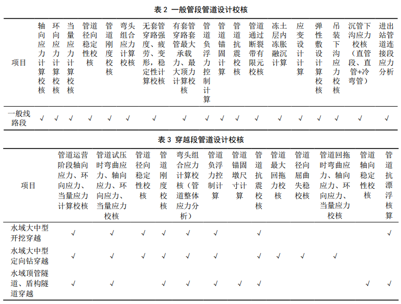 (2)提升應力校核水平。在初步設計和施工圖設計階段,開(kāi)展不同管段應力校核,結合施工圖敷設情況,篩選典型地段,考慮管道可能經(jīng)受的外部荷載情況,采用有限元軟件進(jìn)行實(shí)際工況下的應力校核,確保管道應力不超過(guò)規范許用應力,如表 2、表 3所示。