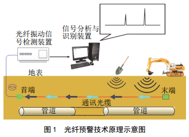 基于該技術(shù)的管道光纖預警系統通過(guò)與管道同溝敷設的通信光纜作為分布式傳感器,依靠其對運動(dòng)、壓力和振動(dòng)非常敏感的特性,通過(guò)對管道上方產(chǎn)生的振動(dòng)信號探測分析,能夠有效識別人工作業(yè)、機械挖掘、重車(chē)碾壓、地質(zhì)災害等事件,基于GIS地圖系統直觀(guān)展示管道外部風(fēng)險警情信息,包括報警時(shí)間、事件位置、事件類(lèi)型、事件級別、管道樁號等。