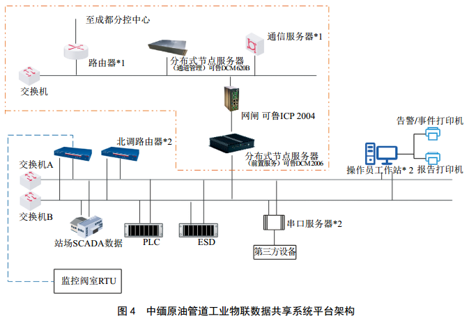 中心端布設在成都分控中心,可以看到各站場(chǎng)數據和調度權限等。系統設計充分考慮將來(lái)其他管道站場(chǎng)、閥室、穿跨越數據點(diǎn)接入平臺的需求,預留了充裕的接入空間。