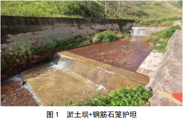 此類(lèi)水毀治理措施主要有:管道上方回填土至保證管道安全厚度;澆筑鋼筋混凝土蓋板以保證管道上方覆土不被水流沖走;在管道跨越河道段下游修筑“淤土壩+鋼筋石籠護坦”(圖 1),使管道上方堆積淤泥,河床不再繼續下切,保證管道上方覆土處于安全厚度。