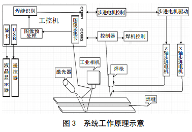 通過(guò)激光視覺(jué)傳感單元,系統將以每秒25幀的速度采集圖像,采集的數據輸入到控制器的圖像處理軟件中,對采集的數據進(jìn)行圖像預處理、圖像識別后輸出焊縫位置信息。