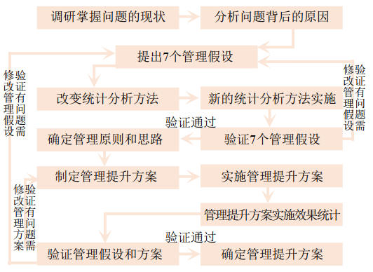 按照表 1分類(lèi),整理匯總分公司2019年2月至11月排查發(fā)現的1556項“低老壞”問(wèn)題,分析得出統計結論,并反向驗證管理假設,確定整治原則和方案,制定整治措施。持續跟蹤記錄整治措施實(shí)施后的相關(guān)數據并統計分析,依據統計分析結果,不斷提升和完善管理假設和整治方案,形成閉環(huán)管理。整治流程分為12個(gè)步驟,如圖 1所示。