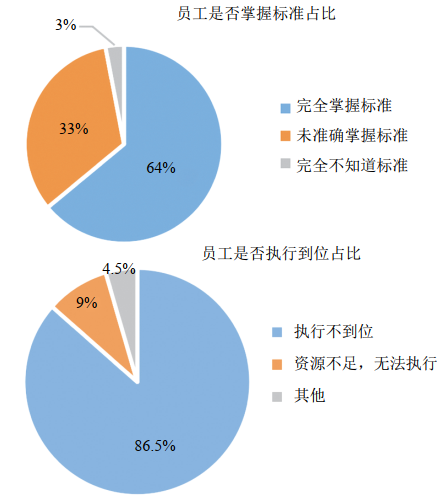 圖 2結果表明,64%的問(wèn)題員工已完全掌握處理標準,33%知道有問(wèn)題、未準確掌握標準,說(shuō)明絕大部分“低老壞”問(wèn)題都是員工能力范圍之內可以避免的。執行不到位占比高,說(shuō)明員工工作態(tài)度不積極是產(chǎn)生問(wèn)題的主要原因。